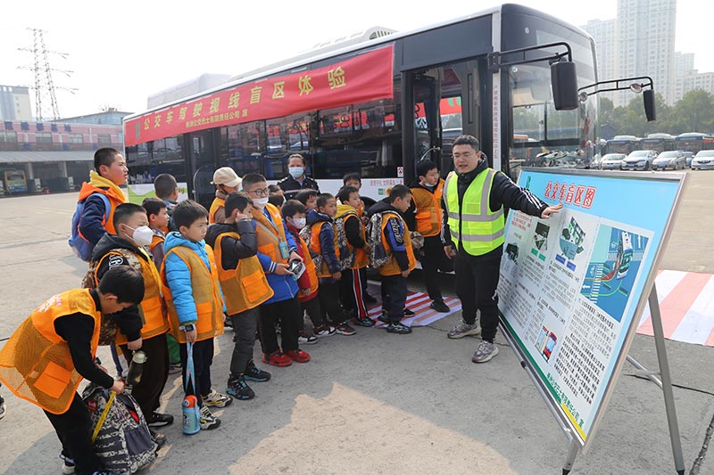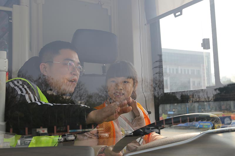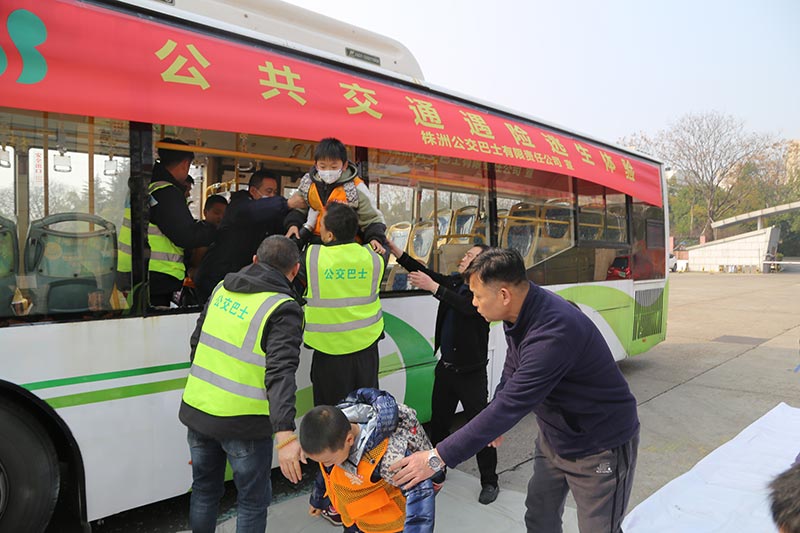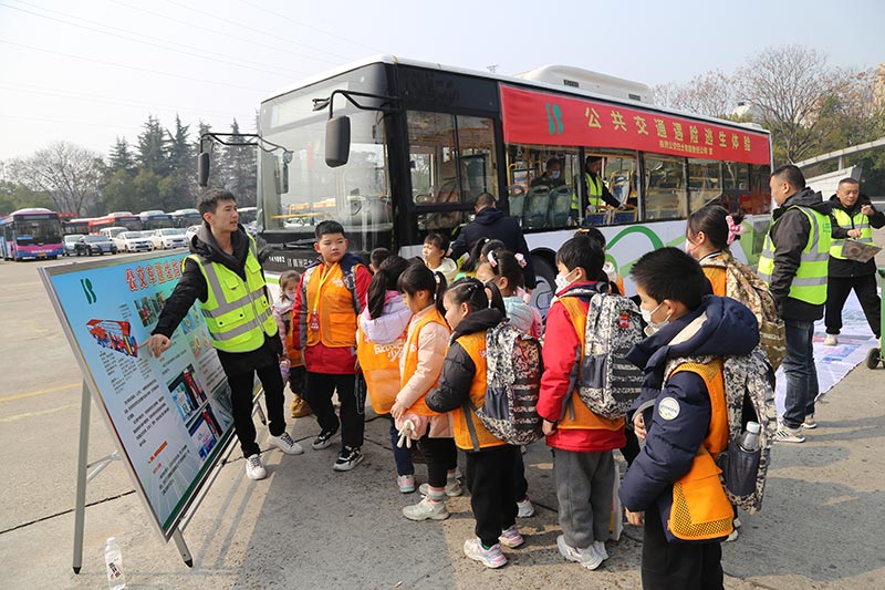 公交公司前坪兩臺公交巴士前,孩子們被分為兩個組,參與"突發(fā)情況緊急逃生體驗"和"駕駛位體驗公交視野盲區(qū)"。通過參加活動,讓欄目小記者更加了解公交車的結(jié)構(gòu),坐在駕駛員位置上,孩子們清楚的感受到了視力所及不到的視野盲區(qū)。坐在乘客位上,觀看駕駛員叔叔講解公交車廂內(nèi)應(yīng)急安全錘、消防滅火器的正確使用方法,親身體驗了突發(fā)情況緊急逃生全過程。從公交巴士上下來,孩子們紛紛表示:"這次活動體驗深刻,我們學(xué)到了很多有用的知識!"