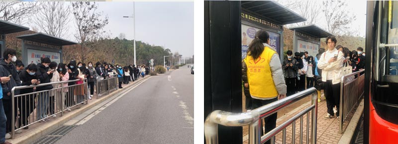 二是開通職教城直通車。在客流調(diào)查的基礎上,公司開通了周五"職教城至紅旗廣場","職教城至中心廣場"的學生專線直通車。增開直通車根據(jù)天氣和現(xiàn)場調(diào)度進行靈活運調(diào),當日增加10臺直通車,運送學生約一萬多人,每周安排交通勸導人員30人。